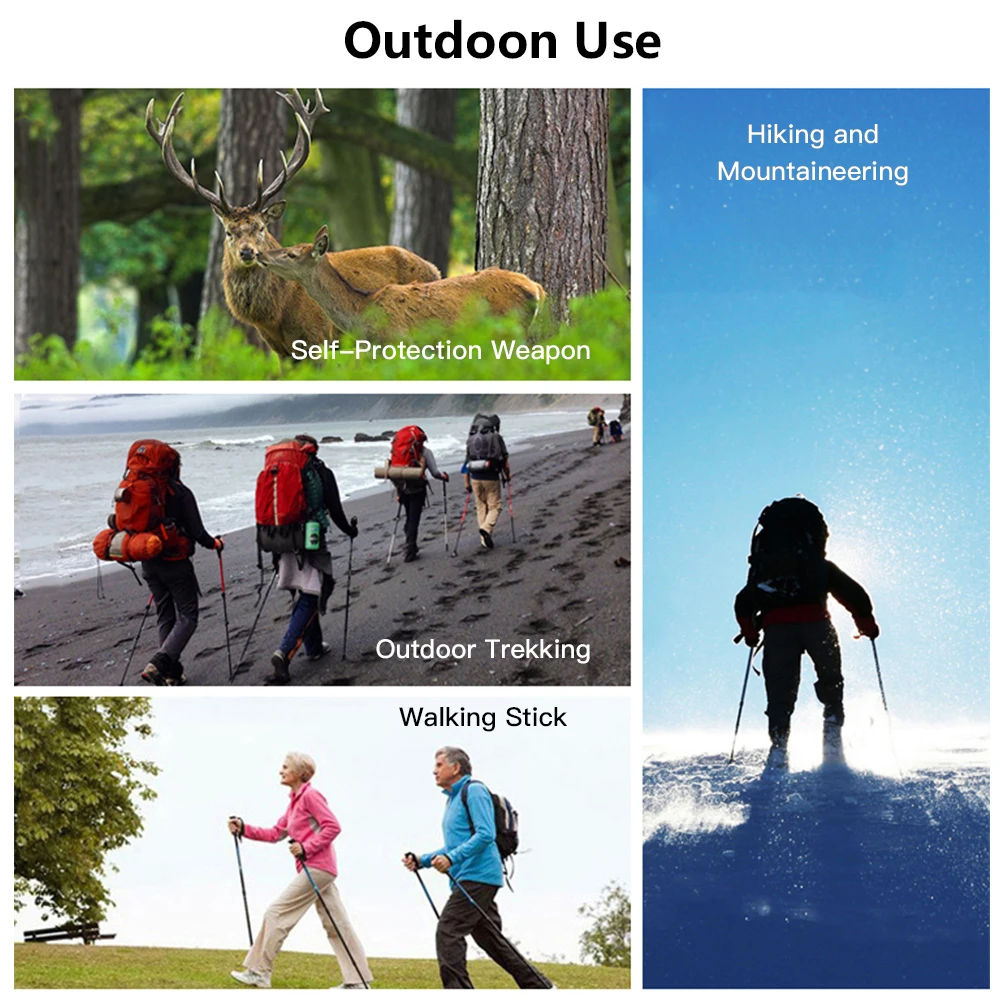 ★Нескользящий трость, имеет прочную раму и ультра-захватывающую резиновую стопу, что обеспечивает надежное сцепление для треккинга на скалистой и неровной местности, делает чрезвычайно безопасной и надежной трость.