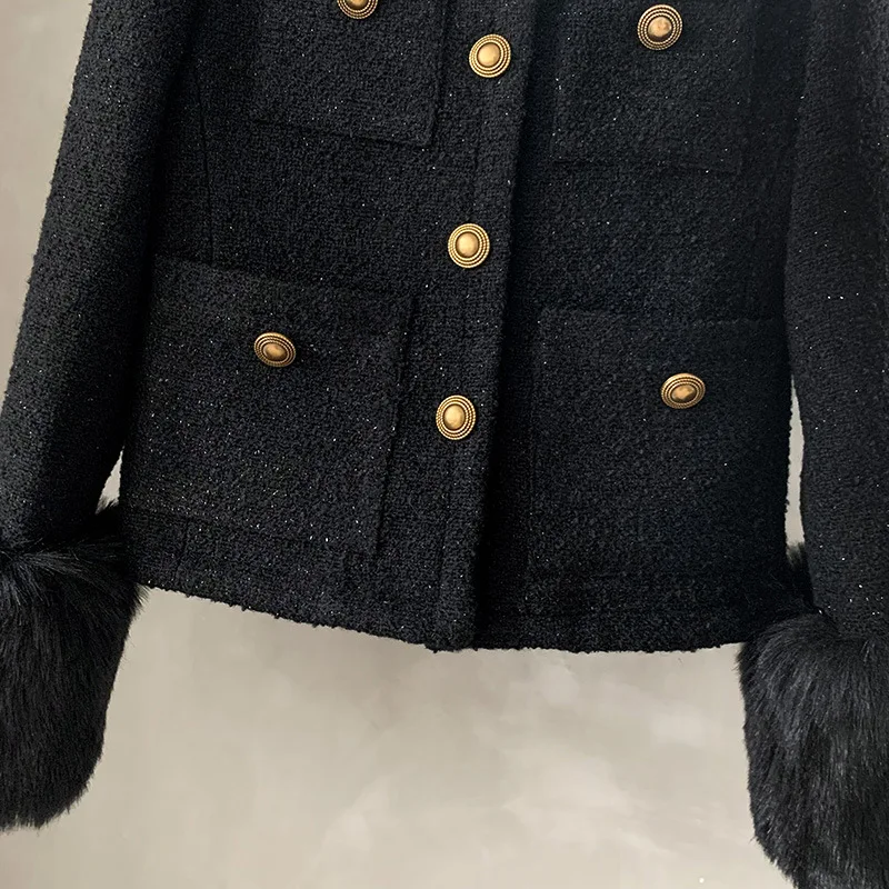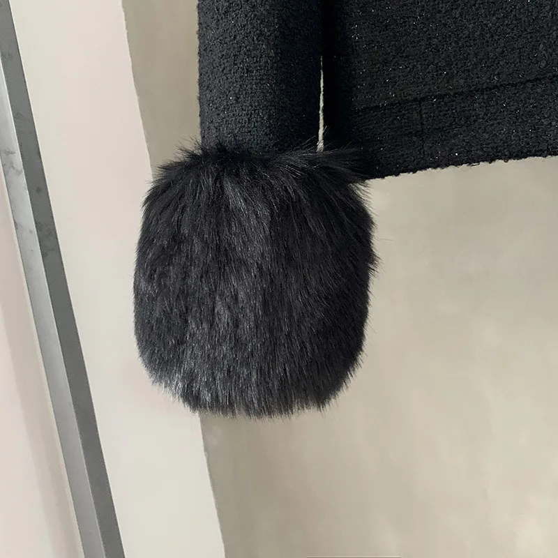 Отзывы о Высококачественная твидовая Черная куртка с пушистыми рукавами новинка