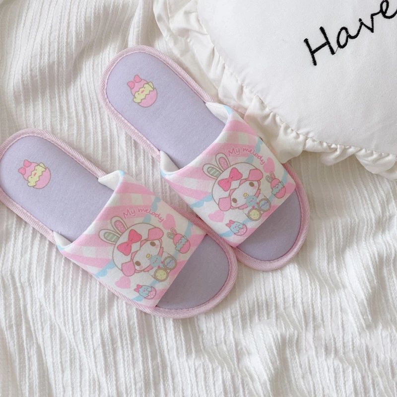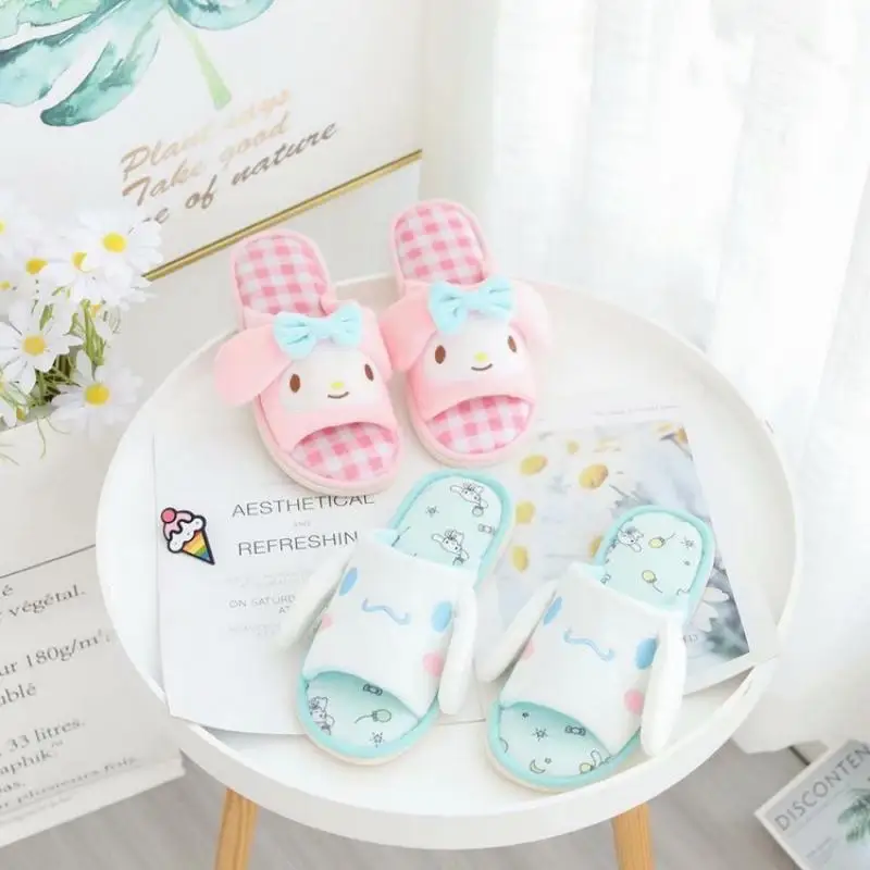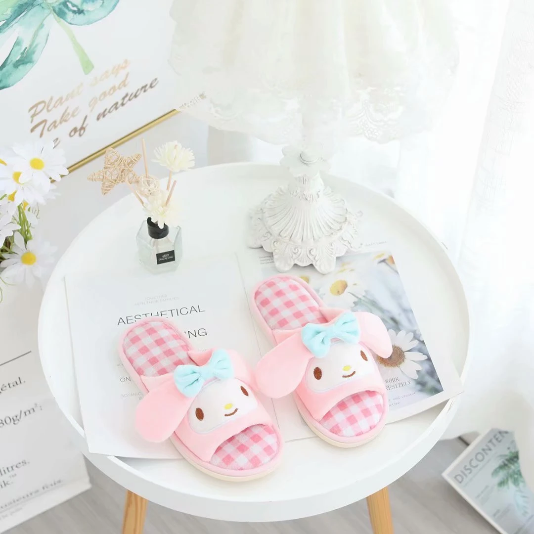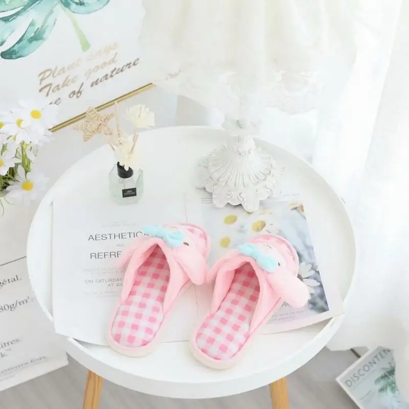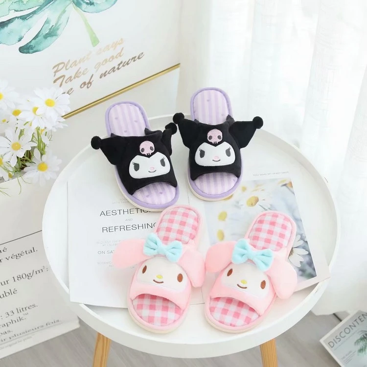 Отзывы о Sanrio Kuromi Мультфильм Мелодия домашние тапочки весенние плюшевые Cinnamoroll аниме