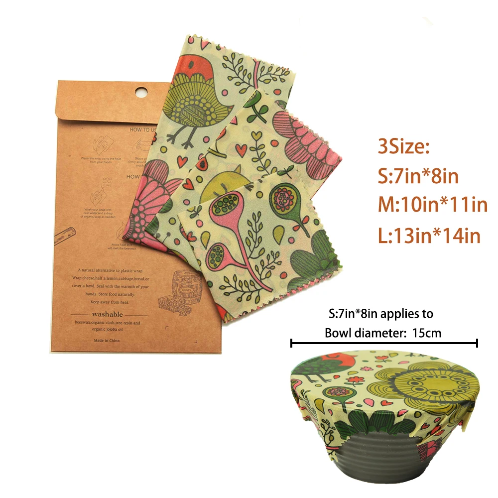 Поставляется с 3 шт в одном пакете из крафт-бумаги, используйте их в разных чашках и разных фруктах, когда вы дома или на улице, обертывание из пчелиного воска сохранит вашу еду в любое время;