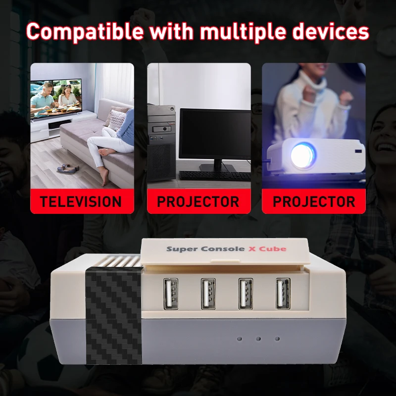 Super Console X Cube имеет 4 порта USB 2,0, которые можно подключить к нескольким контроллерам. Вы можете веселиться с семьей и друзьями