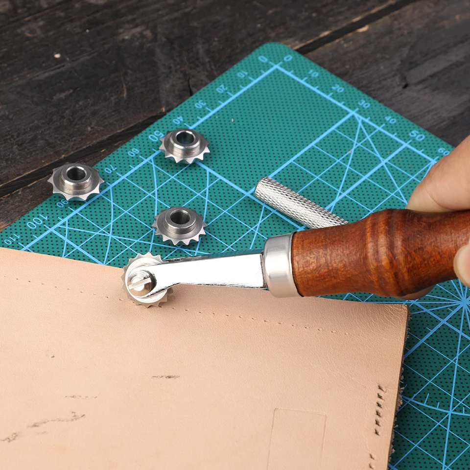 5 шт колесо для скрайбирования + (черный, натуральный белый, глубокая карта, кофе 30 м * 1) + awl + кожаная швейная игла + Золотое медное кольцо * 1