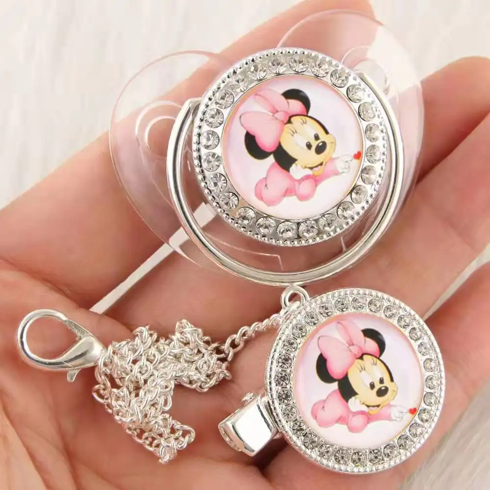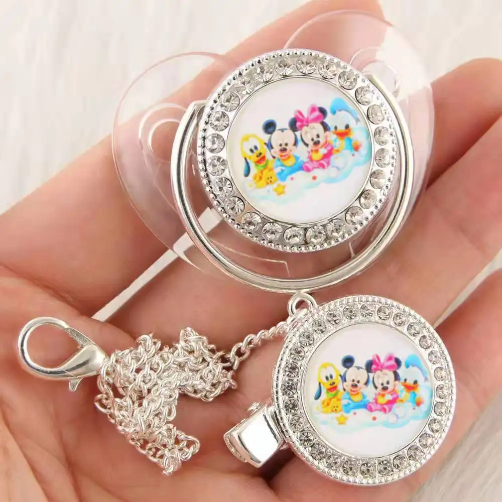 Hot-selling baby weaning comfort pacifier transparent silver Mickey Mouse diamond soothing play mouth point drill baby pacifier