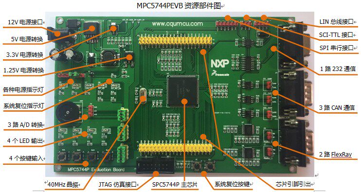 Макетная плата MPC5744PDEV/оценочная плата главный чип управления с использованием NXP Freescale нового LQFP144 пакета SPC5744PFK1AMLQ9 чип, предназначен для автомобильного электронного приложения, практики промышленного контроля для проверки программного обеспечения и аппаратных функций и тестирования приложений модуля выделенной платформы разработки. Разработанный Freescale лабораторией Чунцин университета.