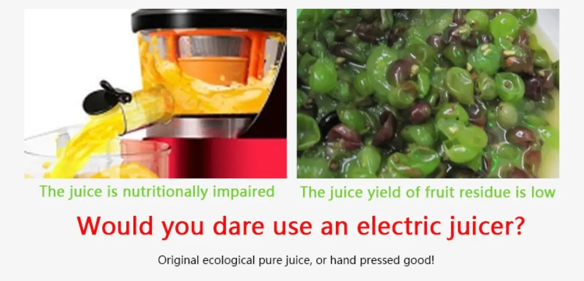 Вращение на 3,90 ° свободно, используя Принцип рычага, ручное нажатие сока является более трудоемким, движение более свободное, и лучше поддерживать оригинальный вкус сока