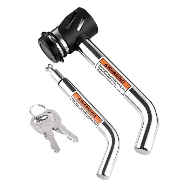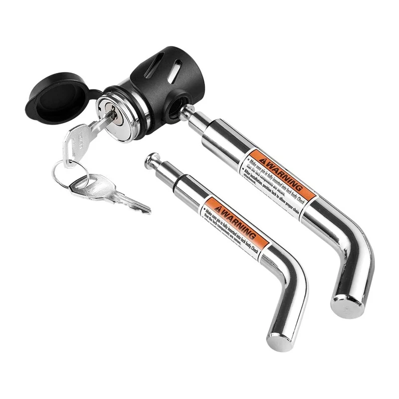 Премиум Материал: замок приемник прицепа использует хромированную углеродную сталь, твердый и жесткий для изгиба. Вращающаяся на 360 градусов головка, легко обрабатывается. Плоский ключ может быть скопирован большинством розничных торговцев. Резиновая защелкивающаяся крышка защищает замочную скважину от влаги, пыли и ржавчины.