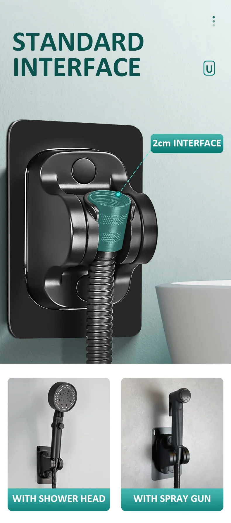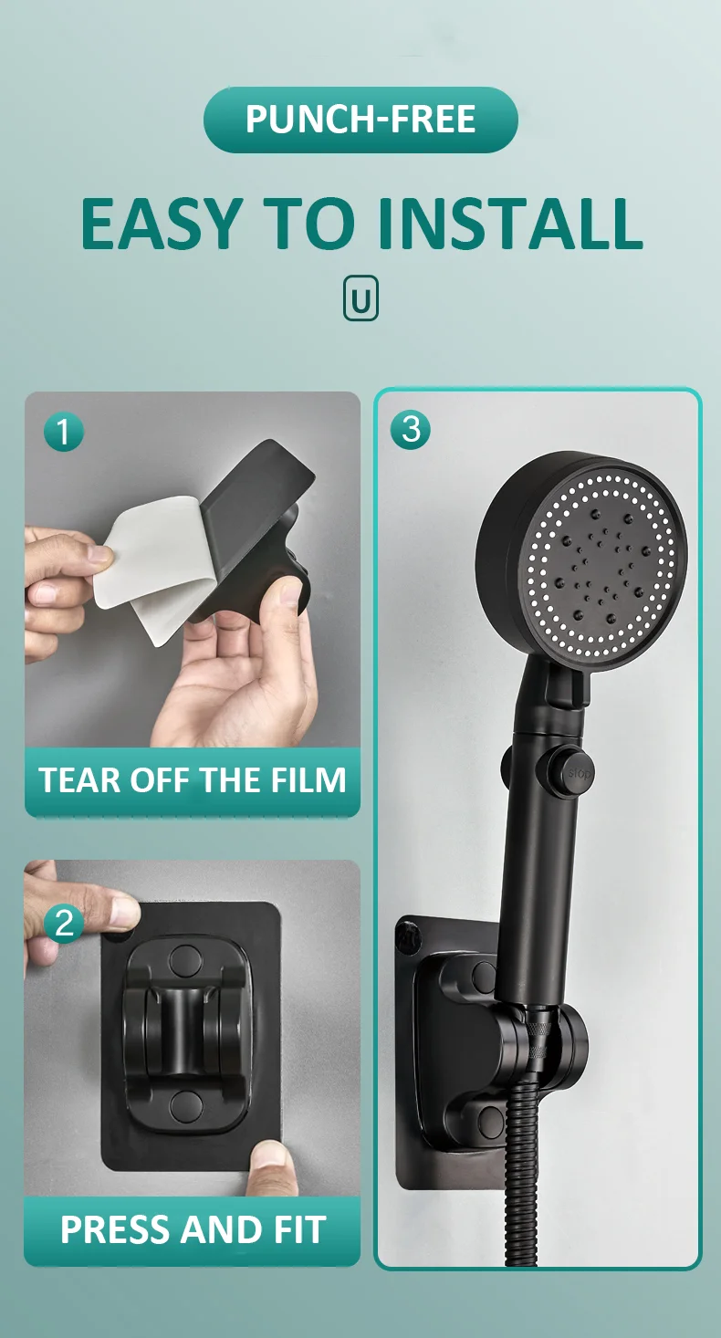 Применимо: клейкая насадка для душа подходит для различных гладких мраморов, металлической поверхности, керамической плитки, гладкого стекла. Пожалуйста, не кладите его на текстурированную плитку, вогнутую плитку, матовое стекло или грубую древесину