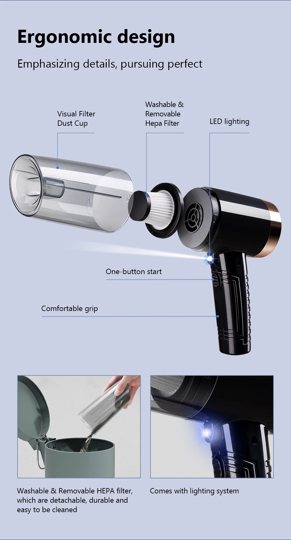 Отзывы о Беспроводной автомобильный пылесос мощный циклонный очиститель с функцией