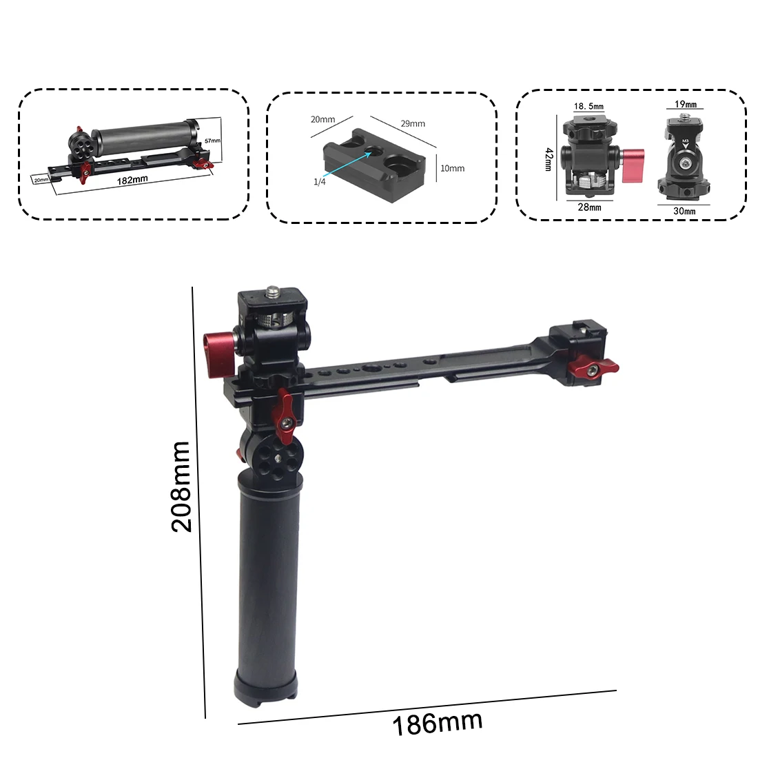 Разработан с 1/4-дюймовым и 3/8 дюймовым интерфейсами и холодной обувью, для монитора, микрофона и светодиодный светильник быстрого крепления.