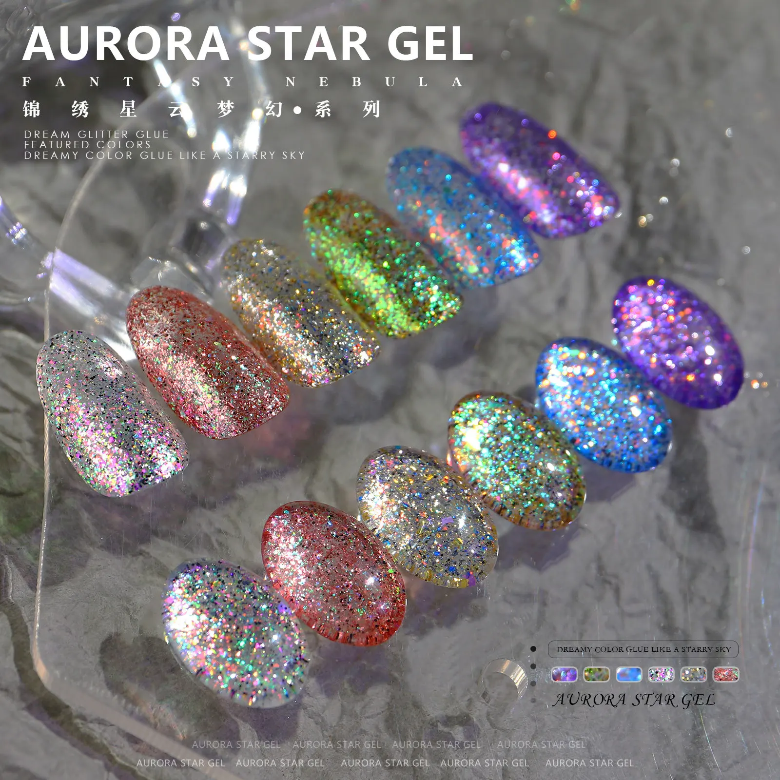 Отзывы о 2022 6 мл Фэнтези Туманность Аврора Звездный гель блестящая пудра Блестки УФ-гель