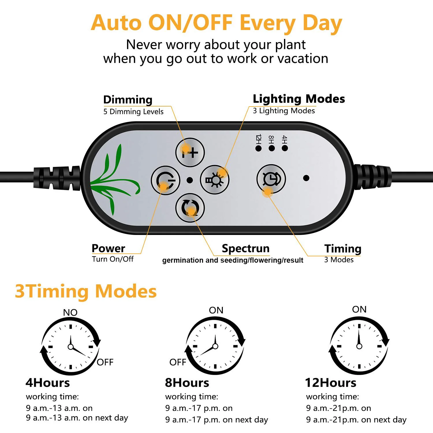 USB завода светать светильник солнечный светильник полный спектр белого светильник ing с регулируемым углом наклона Настольный зажим для роста растений лампы для комнатных растений 5 уровней яркости 4/8/12H таймер