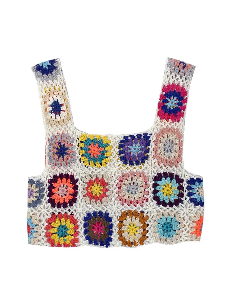 Отзывы о Женский вязаный клетчатый Топик с цветами укороченный Топ ручной работы вязаные