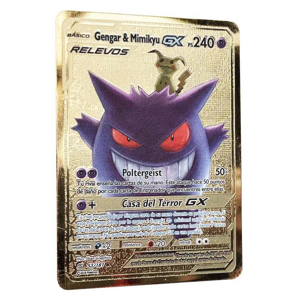 Отзывы о Золотые карты покемона Gengar Mimikyu GX в испанском стиле металлические буквы подарок