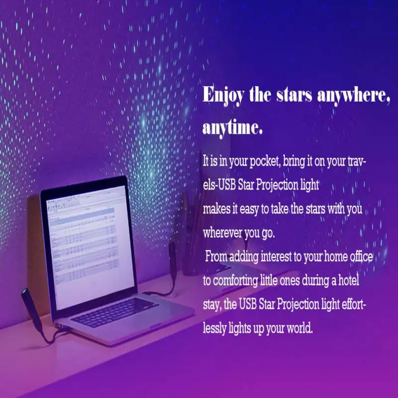 Светильник USB Star Projection, создающий легкий светильник, добавит интерес к вашему домашнему офису и обеспечит комфорт маленьким детям во время пребывания в отеле.