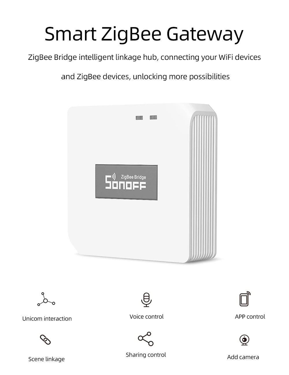 1.SONOFF ZigBee Bridge-это сердце умного дома, которое позволяет удаленно управлять различными устройствами и сенсорами ZigBee для мониторинга и контроля дома, И позволяет создавать умные сцены, чтобы смарт-Устройства Wi-Fi и ZigBee общались, чтобы получить доступ к умному дому и контролировать их все с помощью приложения eWeLink.