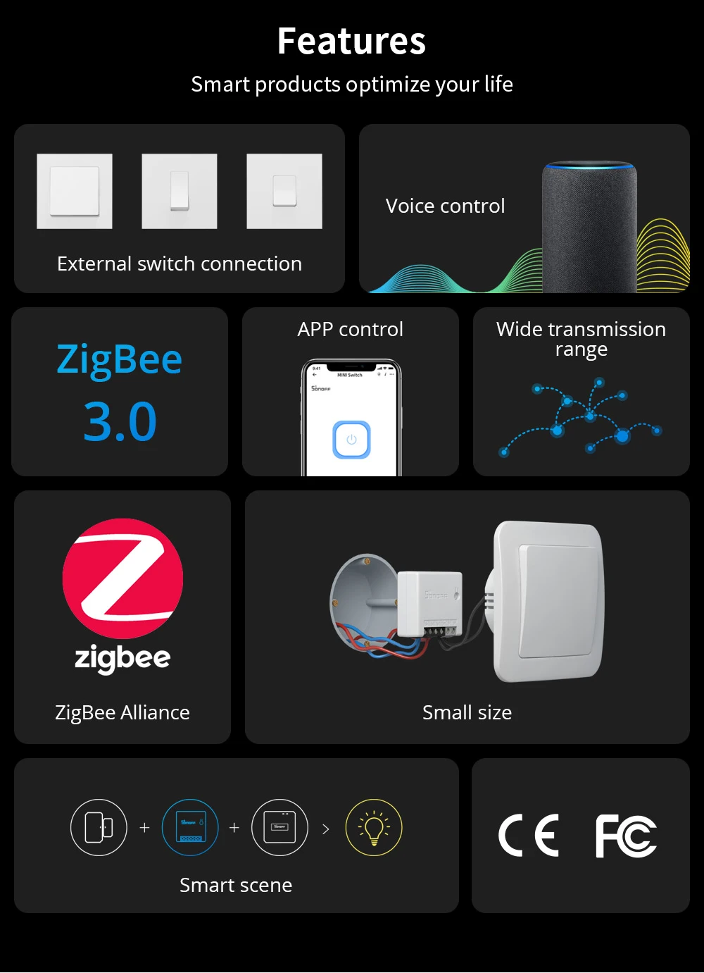 Беспроводной переключатель SONOFF Zigbee-это мини-и изысканный беспроводной смарт-переключатель ZigBee, отвечающий на мост SONOFF ZigBee, который позволяет достичь цели связи между устройствами ZigBee (умный переключатель SONOFF BASICZBR3 DIY и S31 Lite zb умная вилка) И Wi-Fi устройств.