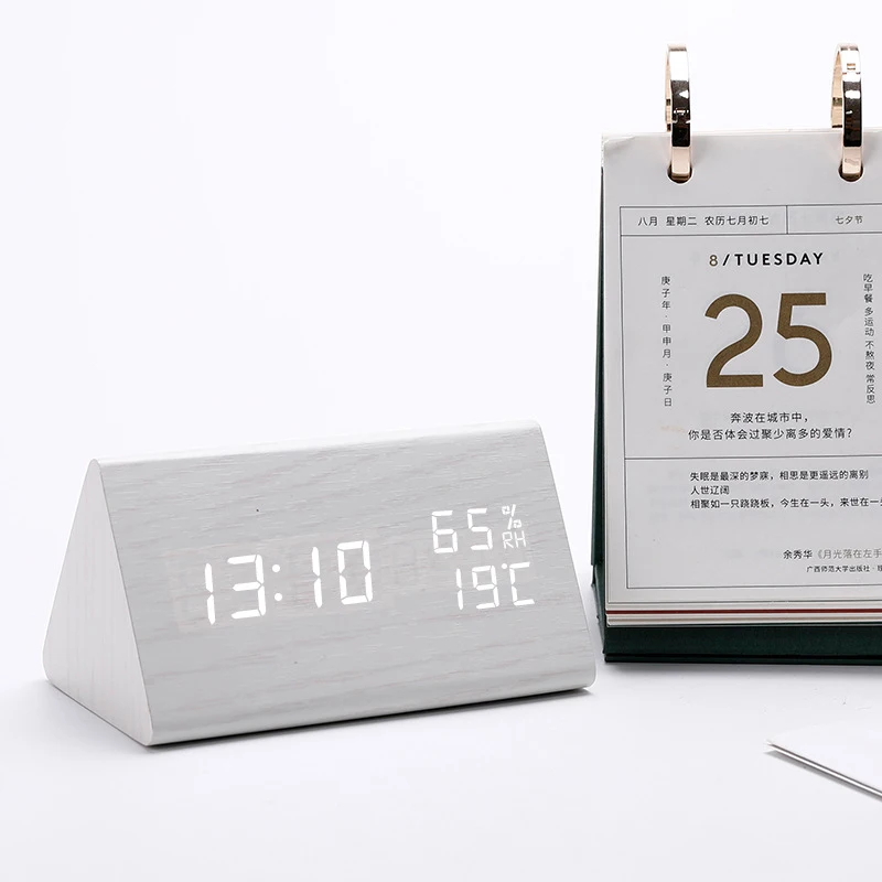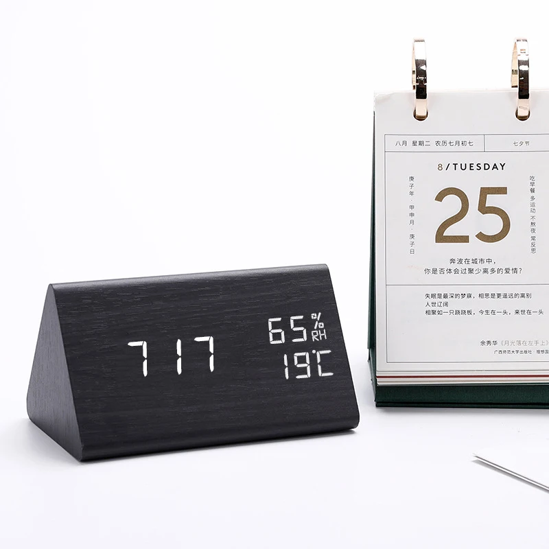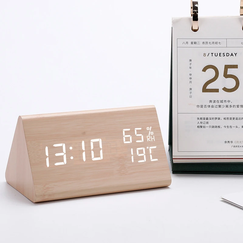 Влажность и температура Будильник треугольные Цифровые Часы светодиодный деревянный будильник настольные часы USB/AAA питание домашний декор стола