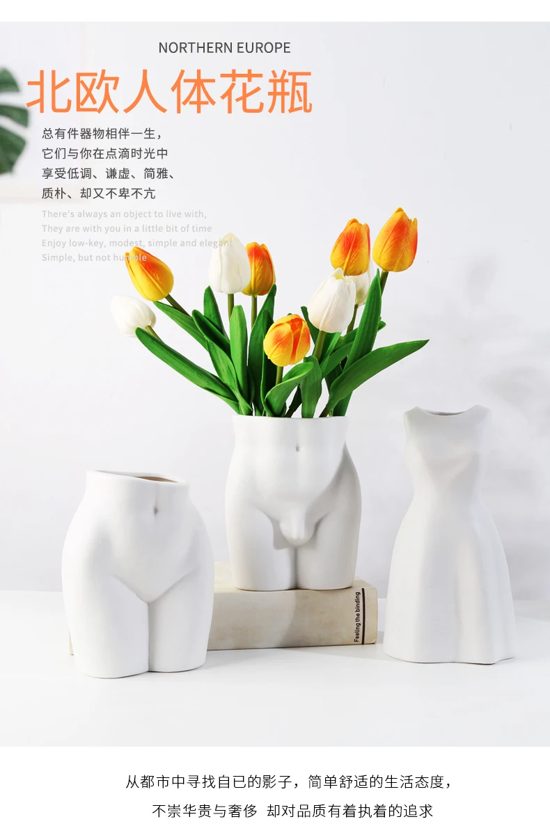 Керамическая ваза для человеческого тела, пластиковая художественная ваза, Скандинавское украшение для дома, керамическая ваза, скульптура, белый цветок