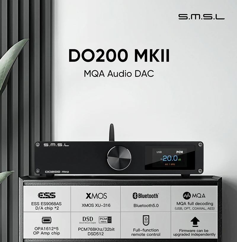 Отзывы о ЦАП SMSL DO200 MKII MQA DAC ES9068AS XMOS XU316 Bluetooth OPA1612 * 5 А DSD512 768 кГц 32 бит
