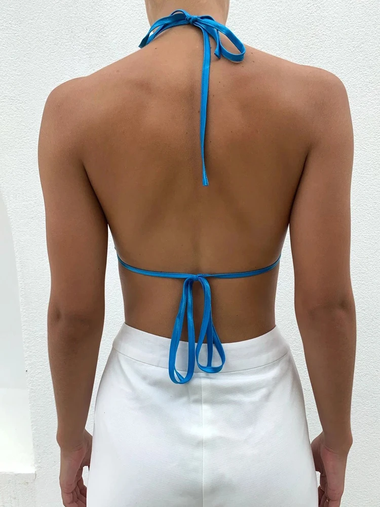 Женские атласные топики с открытой спиной синего цвета, вечерние топики с бретельками, короткие майки, топы Y2k, летняя одежда 2022, наряды