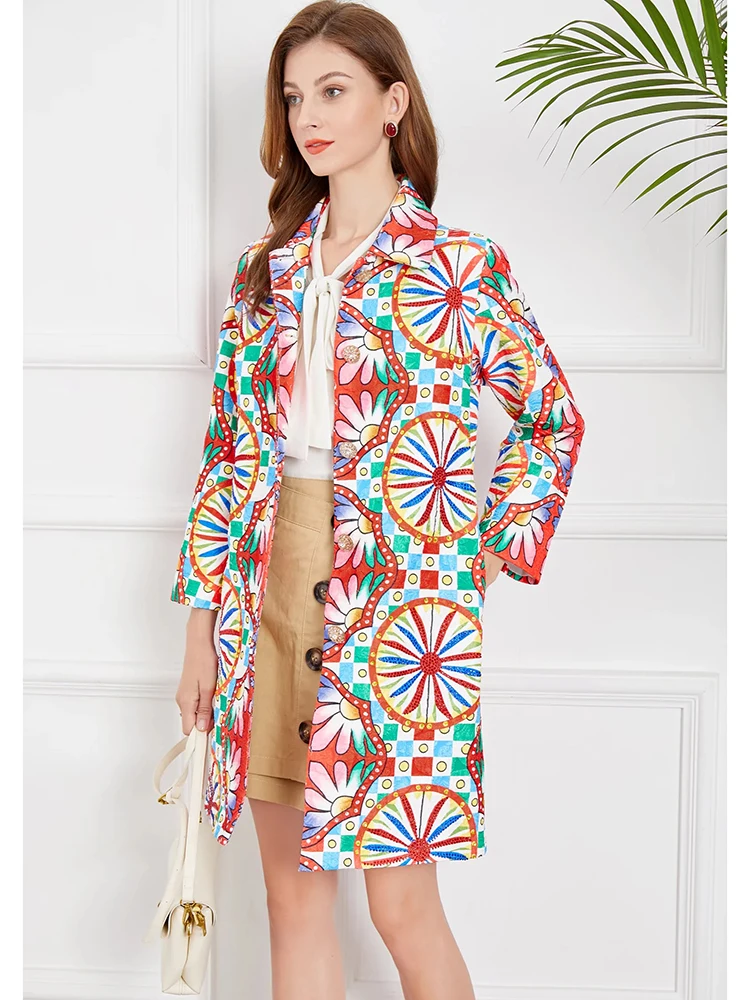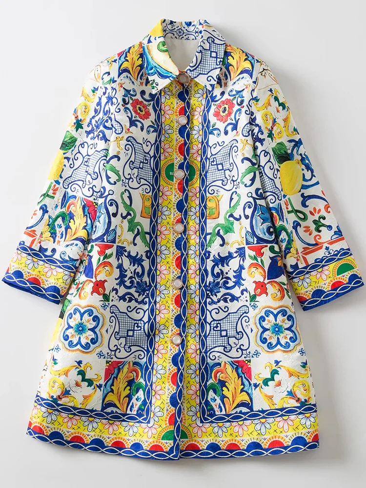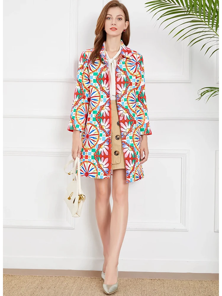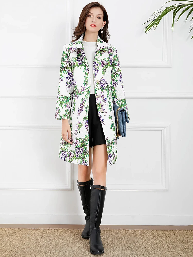 Отзывы о Женское винтажное длинное пальто LD LINDA DELLA с отложным воротником и принтом в стиле