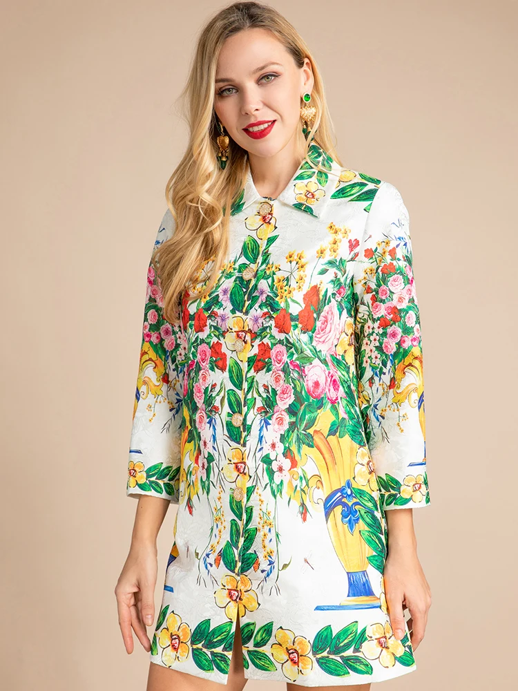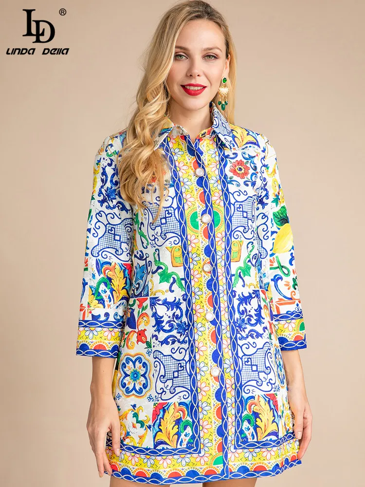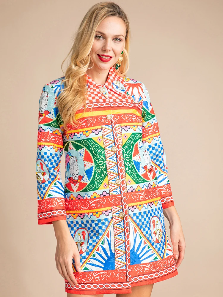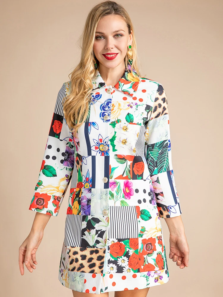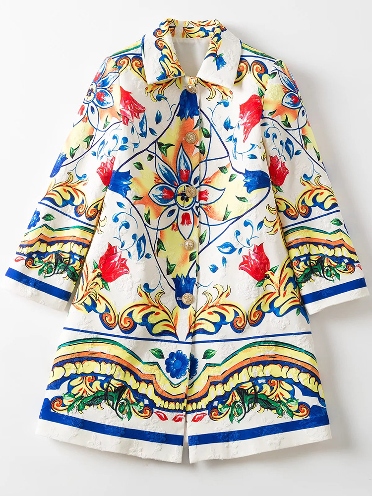 Отзывы о Женское винтажное длинное пальто LD LINDA DELLA с отложным воротником и принтом в стиле