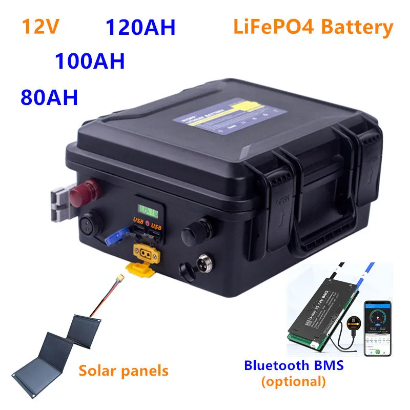 12V LiFePO4 водонепроницаемый аккумулятор 80AH 100AH 120AH встроенный (опционально Bluetooth BMS)