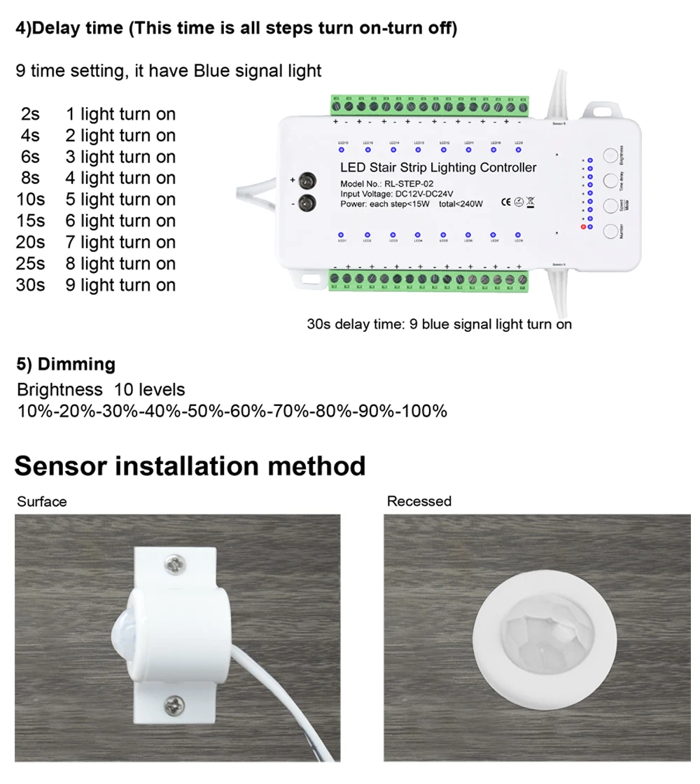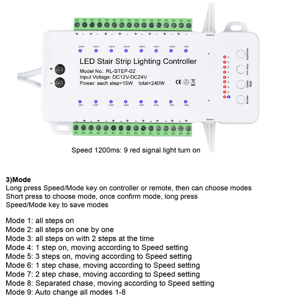 16 шагов двойной движения PIR Сенсор лестницы светодиодный освещение Управление; Для светодиодный rgb светодиодные ленты с РФ Пульт дистанционного управления Управление мульти режимами