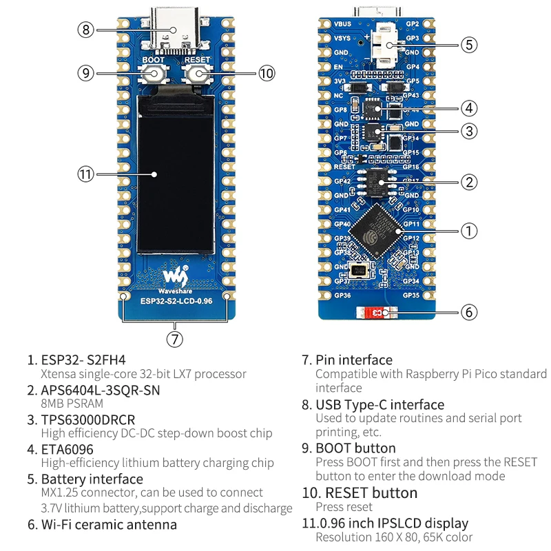 1 × ESP32-S2-LCD-0.96-M (предварительно припаянные штыревые заголовки)