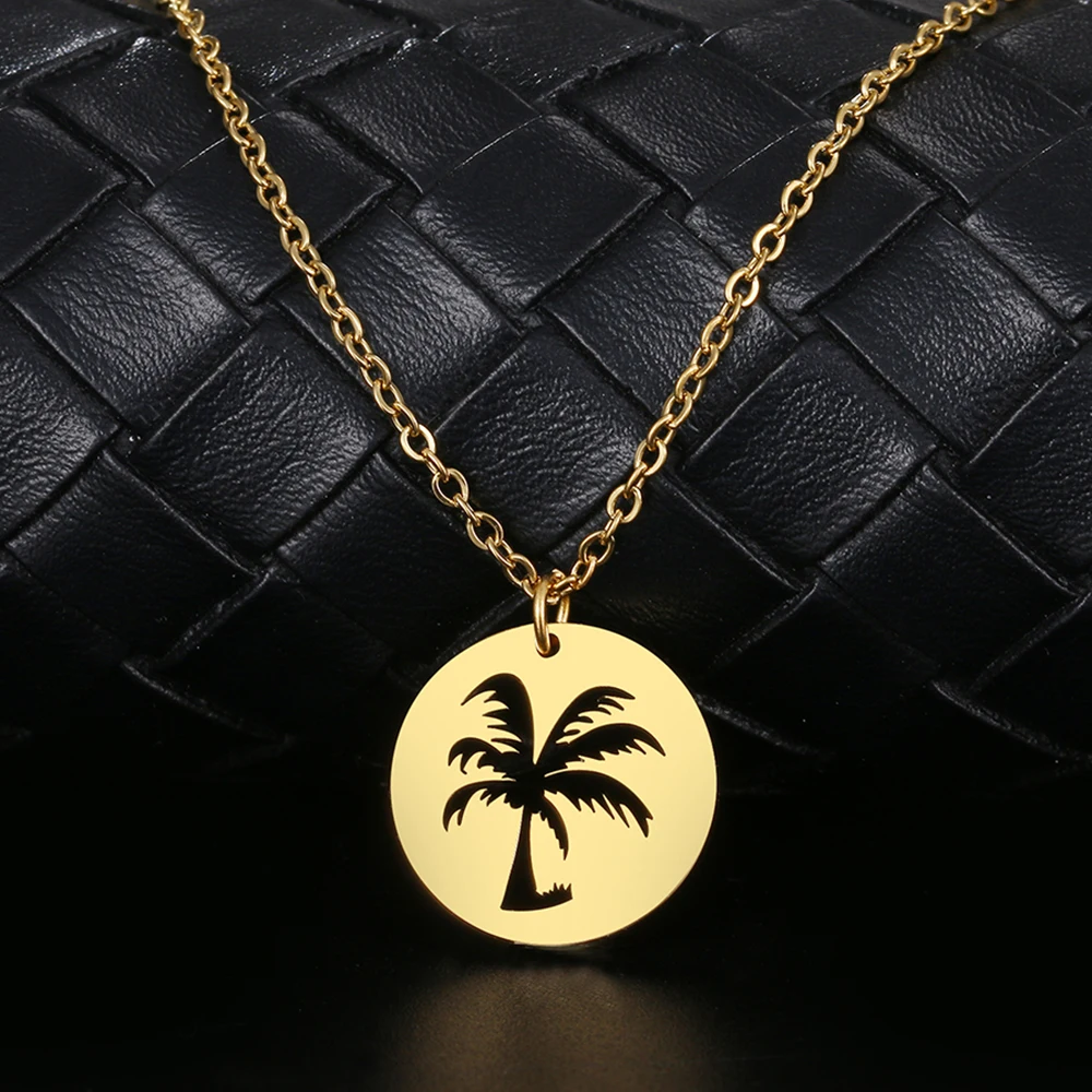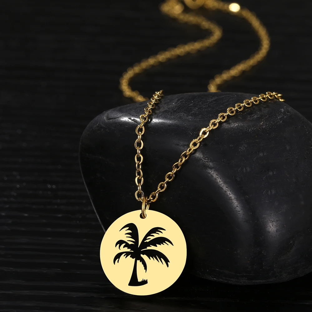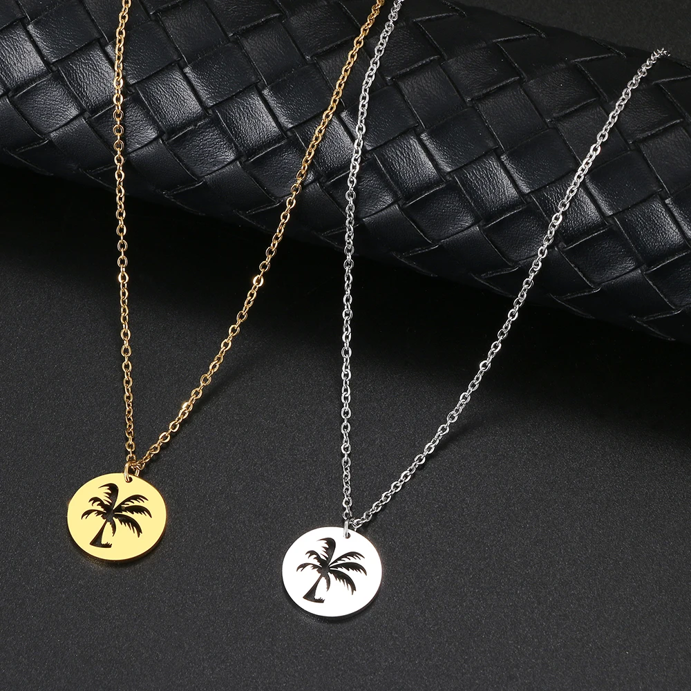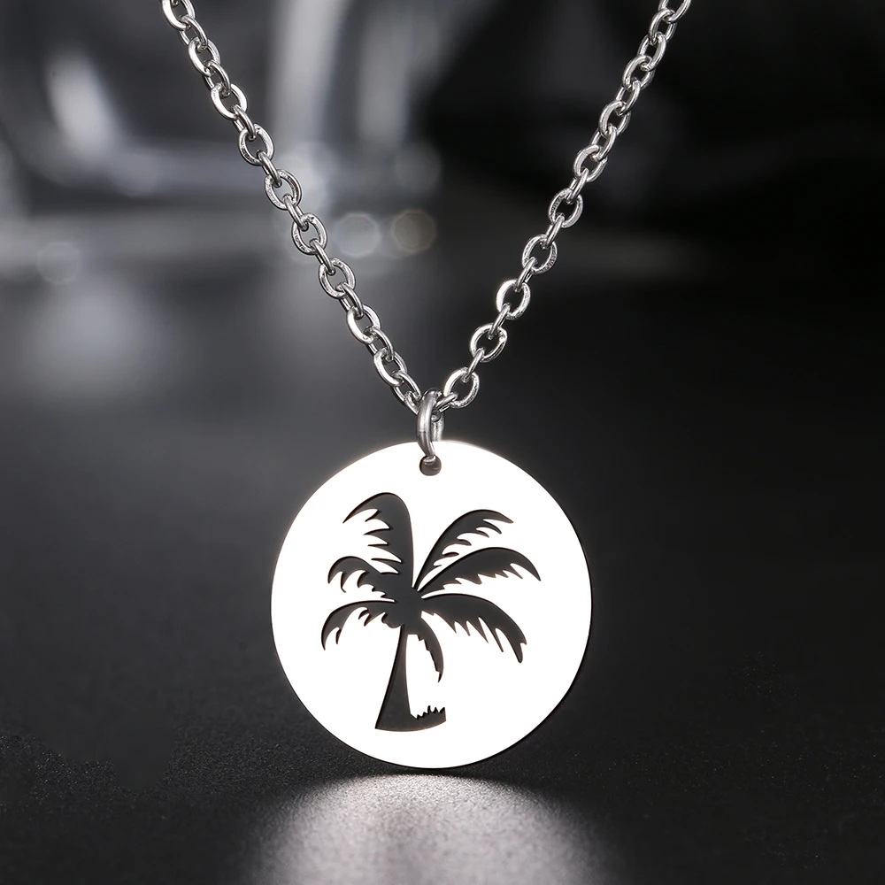 Отзывы о Ожерелья из нержавеющей стали подвеска с кокосовым деревом модный чокер цепочка