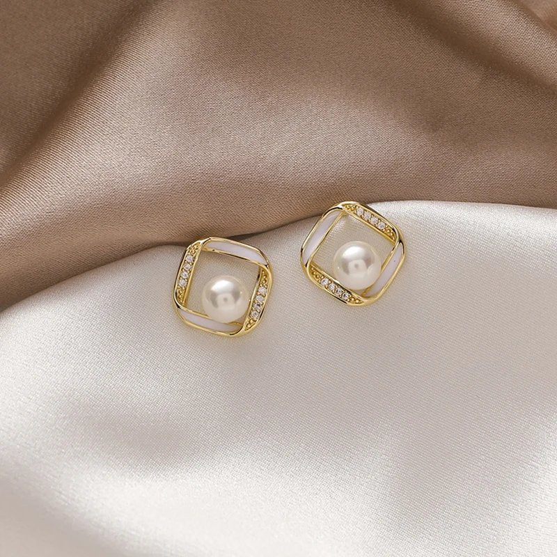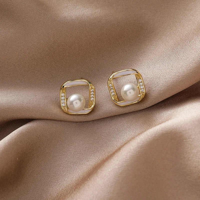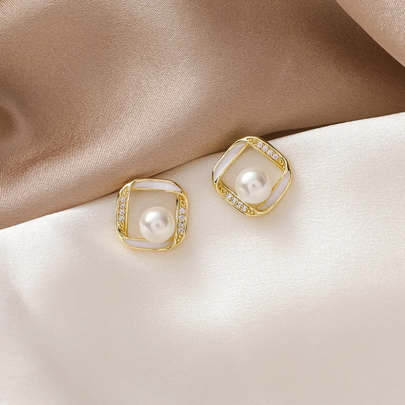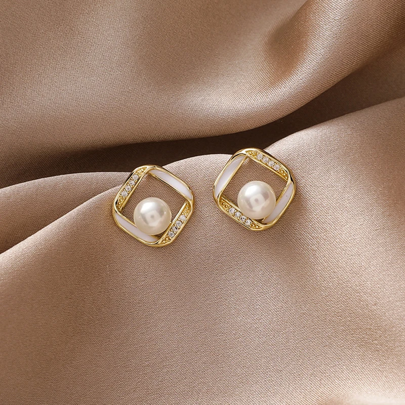 Отзывы о Модные элегантные жемчужные квадратные геометрические серьги-гвоздики в