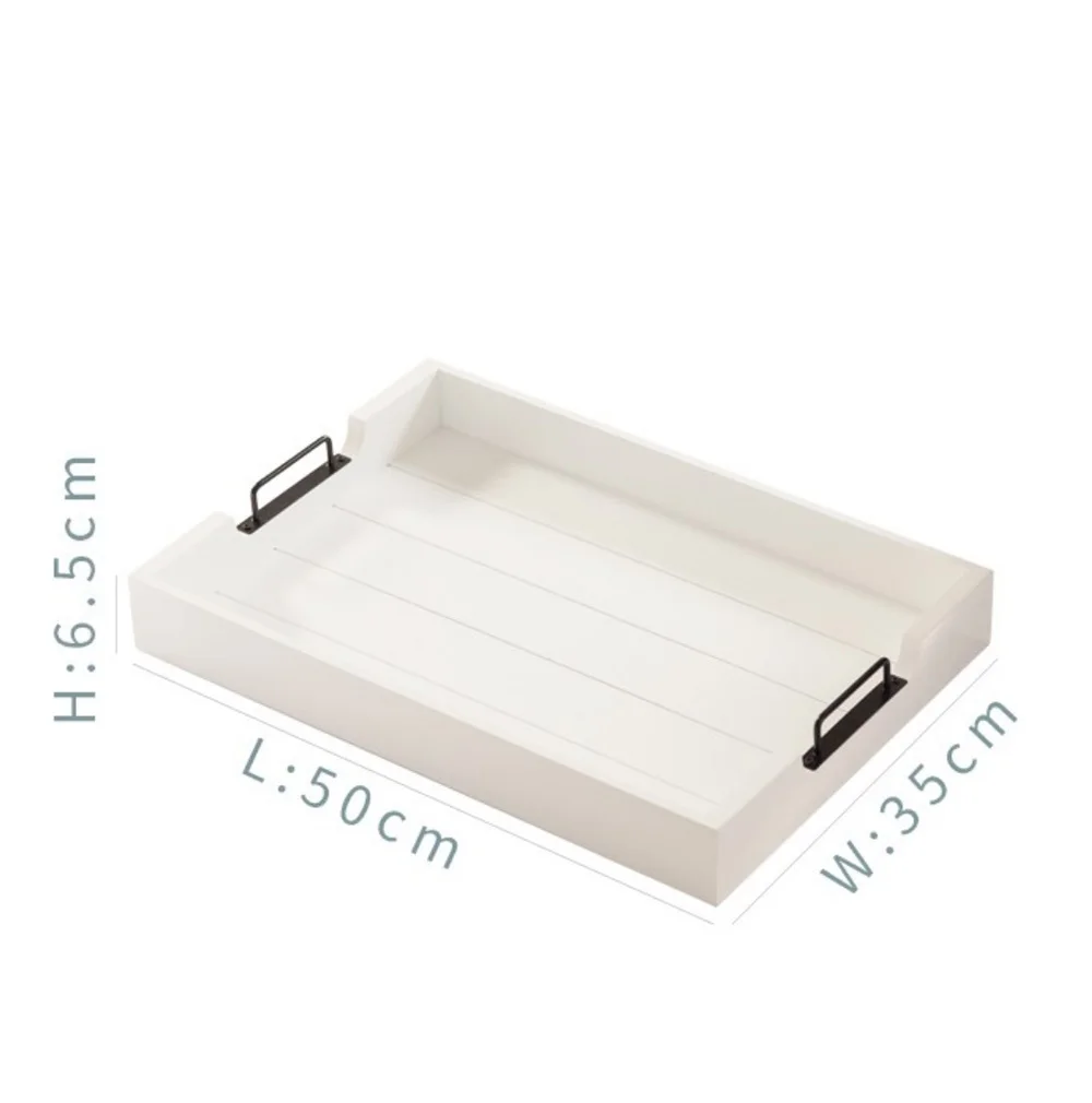 Деревянный декоративный поднос ручной работы, белые прямоугольные железные ручки