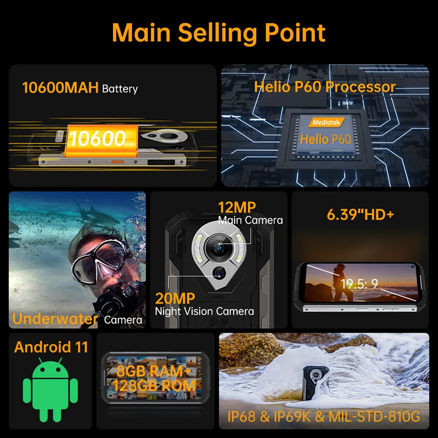 Отзывы о Смартфон глобальная версия OUKITEL WP16 4G 6 4 дюйма 8 + 128 ГБ 10600 мА · ч 8-ядерный камера 20 МП