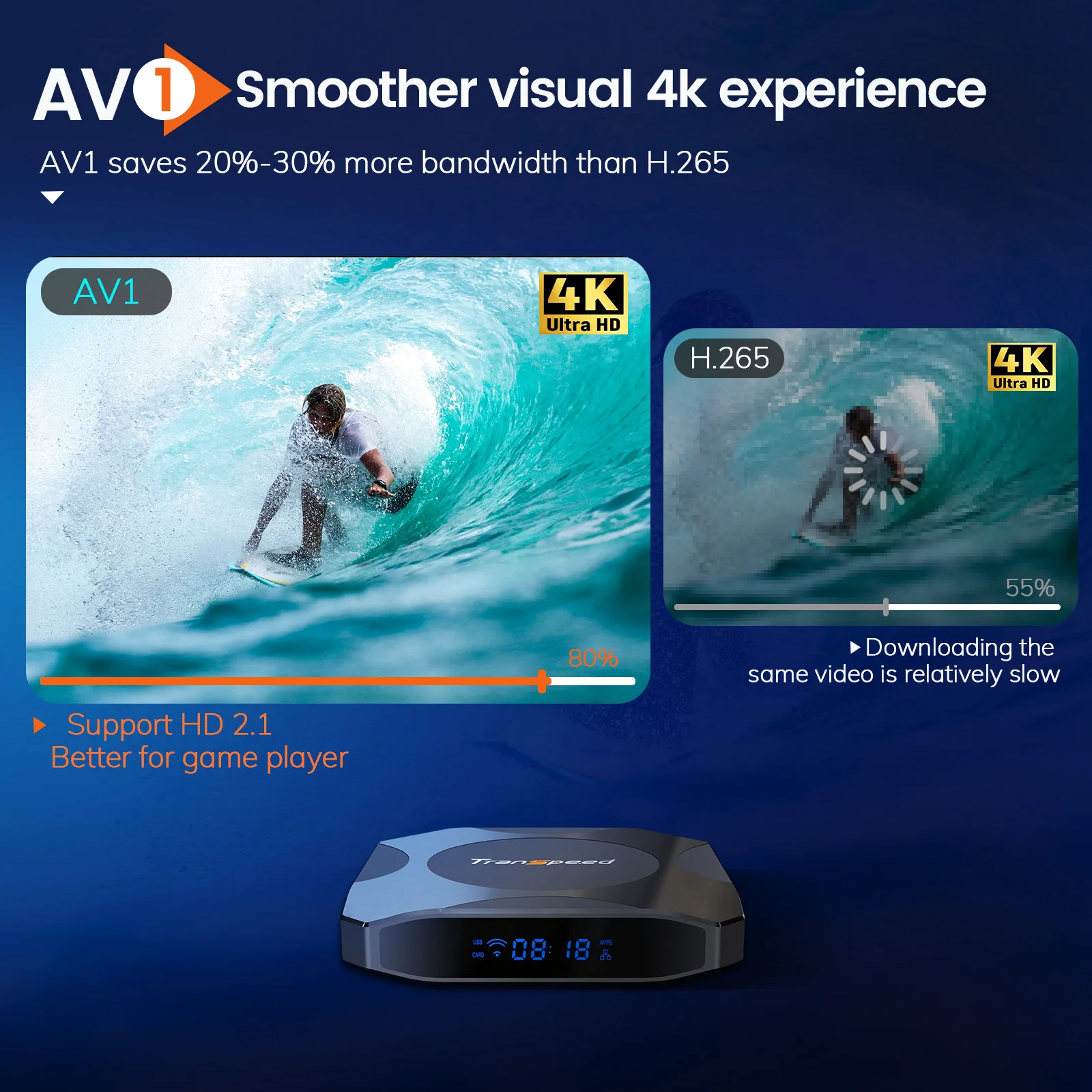 Отзывы о ТВ-приставка Transpeed Android 11 Amlogic S905W2 AV1 Голосовое управление 2 4G и 5G Wifi 32G 64G BT5.0 1080P 3D
