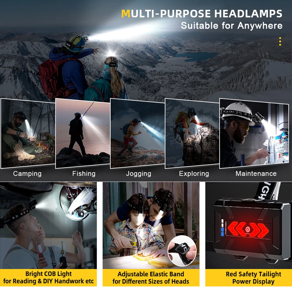 【ВодонепроницаемыйЭта рабочая фара IPX8 класса водонепроницаема, ее можно использовать безопасно даже в дождливые дни, это лучшая фара для бега, езды на велосипеде, кемпинга, альпинизма, строительства, ремонта авто и т. д.