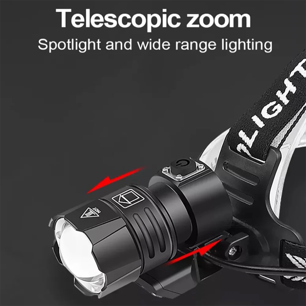 【Телескопический зум】Регулируемая Поворотная фара на 90 ° и функция масштабирования делают этот Тактический налобный фонарь идеальным для любого случая. Вы можете отрегулировать фокус, растягивая налобный фонарь, чтобы получить нужное вам место и луч потока.