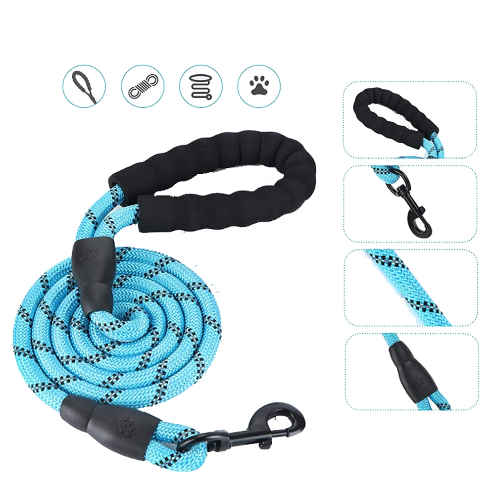 ПЭТ Светоотражающий поводок сильный поводок для собак длиной 1,5 м с удобные мягкие ручки для тяжелых условий эксплуатации обучение прочная нейлоновая оплетка продлевает веревка поводки для собак