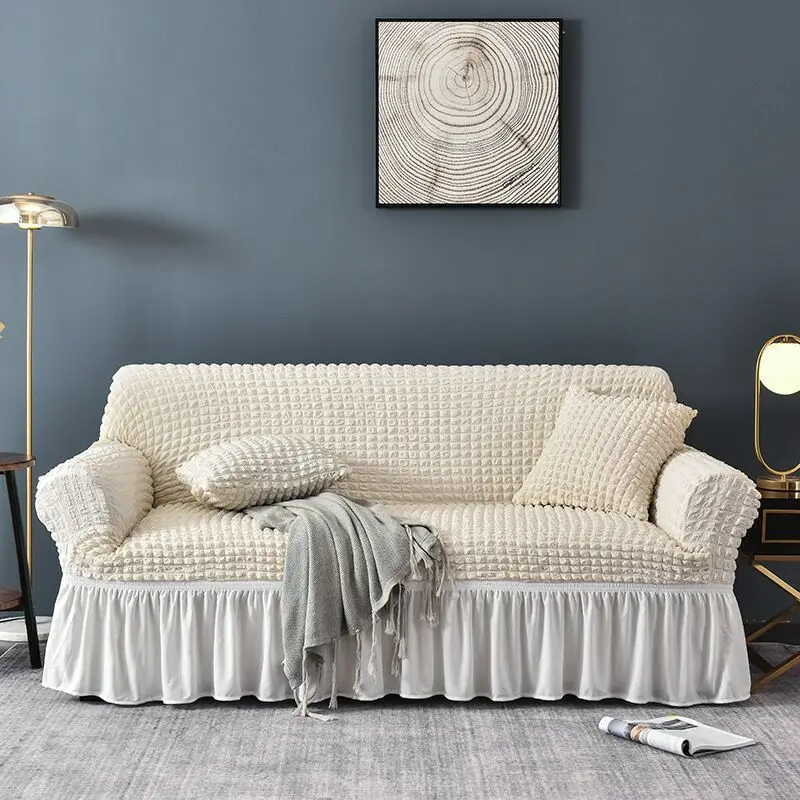 Отзывы о Однотонный эластичный чехол для дивана в гостиную клетчатый секционный с