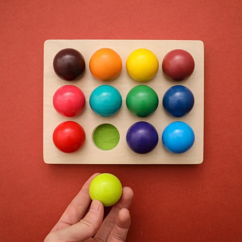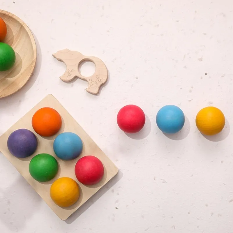 1 комплект, деревянный Радужный шар, цвет Монтессори, Сортировочная доска, обучающая цветная Когнитивная игра для детей, подарок на день рождения
