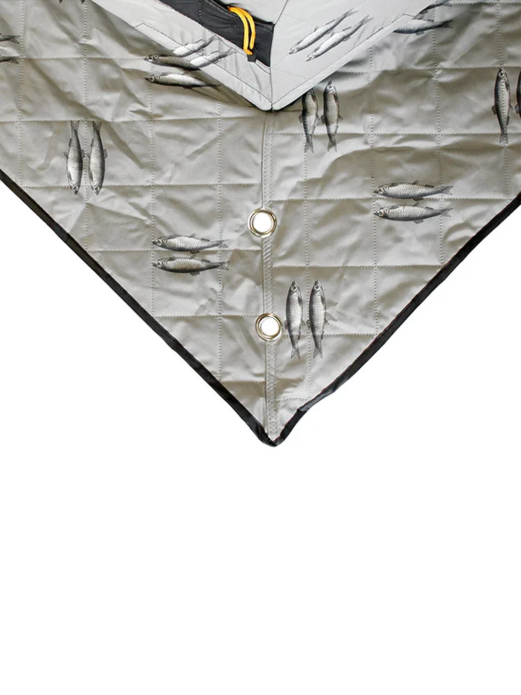 Палатка зимняя WOODLINE ULTRA COMFORT 4+ (230х230х200см, трехслойная, цвет черный/серый), Вместительная трехслойная быстросборная палатка увеличеннных размеров с утеплителем из холофайбера, для комфортной зимней рыбалки. Особенности:1. Унифицированный размер окон (трапеция со сторонами основания 15+40см, высота окна 33см) для всех моделей палаток кубов WOODLAND/WOODLINE. Крепление на липучке, шторка на молнии с внутренней стороны палатки.2. Тент изготовлен из синтетической непродуваемой ткани - внешняя сторона - Oxford 240DPU 5000 мм, внутренняя сторона - Oxford 210D PU 5000 мм. Утеплитель - между слоями - холлофайбер. Трехслойная структура ткани создает воздушно-тепловую подушку, а также позволяет удалять образующий конденсат.3. Внутренняя ткань палатки и наружная ткань крыши выполнены из материала светло-серого цвета, который создает комфортное освещение внутри палатки при наружном солнечном освещении даже без использования осветительных приборов.4. Две полочки под крышей - для хранения мелочей.5. Три вентиляционных отверстия: одно верхнее и 2 нижних с возможностью закрытия с внутренней стороны на молнию. Обеспечивают правильную циркуляцию воздуха в палатке. Идеальное расположение для использования теплообменника.6. В конструкции палатки присутствует специальная планка, закрывающая молнию входа, что препятсвует ее обмерзанию.7. Все молнии палатки оснащены холдерами, что позволяет удобно ими пользоваться.8. На всех моделях, внутри на каркасе палатки предусмотрены фиксаторы для закрепления обвеса (органайзеров).9. Широкая снегозащитная юбка с 8 люверсами для крепления ко льду.10. Палатка рассчитана на размещение 4 и более человек.Размер: 230х230х200 смГабариты транспортной упаковки: 180Х26Х26смМатериал тента: - внешняя сторона - Oxford 240D PU 5000 мм- внутренняя сторона - Oxford 210D PU 5000 ммПрозрачное водонепроницаемое полиуретановое покрытие ткани (PU 5000 мм)Утеплитель - холофайберКаркас: Fiberglass, ø 11 ммОкна: 2 съемных окна, материал TPR морозостойкий. Крепление на липучке. С внутренней стороны есть возможность закрытия шторок с помощью молний.Вентиляция: 3 вентиляционных отверстия - два нижних и одно верхнееЛипучка на боковой стороне - для фиксации входа палатки в открытом состоянии Светоотражающие элементы: есть, с каждой стороны.Вход: одинЮбка: 30 см, 8 люверсов с усилениемВвертыши: 8 шт в чехле.Кармашки: 2 штЦвет: черный/серыйВес: 12,6 кгДополнительная комплектация, приобретается отдельно:- съемное окно для использования теплообменника, арт. 0068990- запасное съемное окно, арт. 0072609- органайзер для принадлежностей IceFish 1, арт. 0068988- органайзер для принадлежностей IceFish 2, арт. 0068989