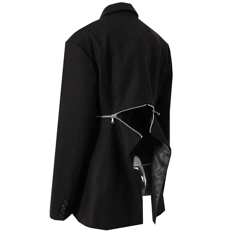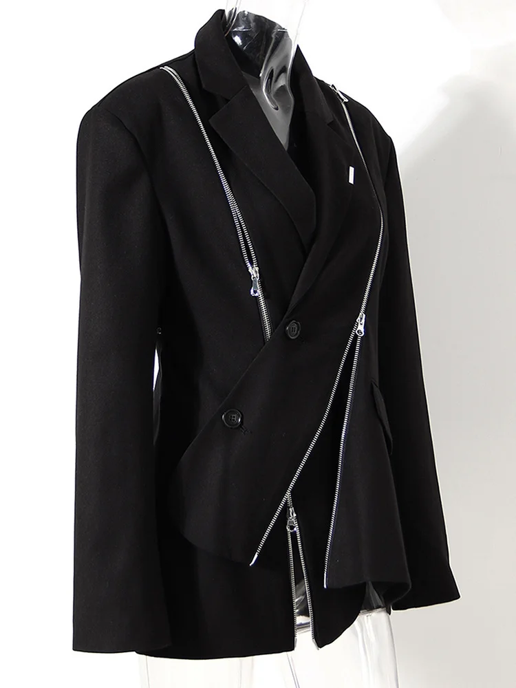 Отзывы о [EAM] Женский Черный Асимметричный Блейзер на молнии новая свободная приталенная