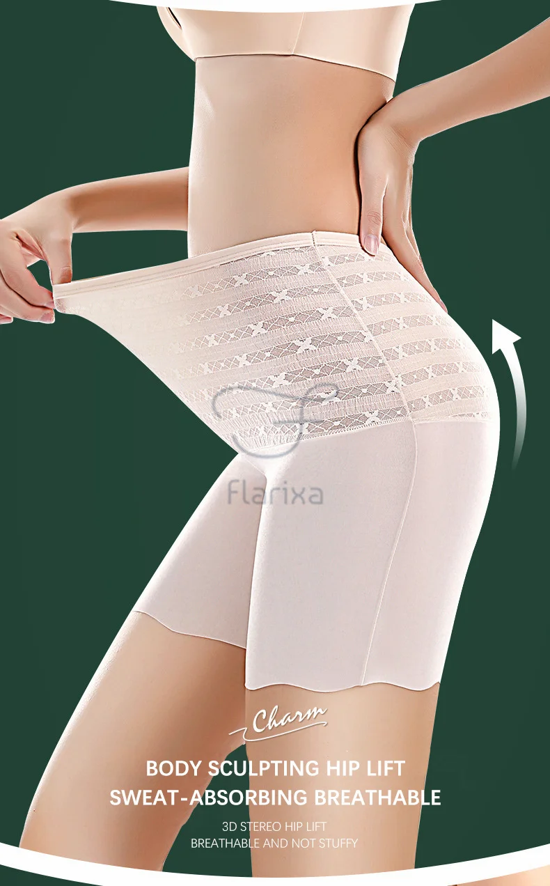 Flarixa 2022 Новые бесшовные безопасные шорты с высокой талией, плоские трусики для живота, дышащие кружевные шорты, женские трусы из ледяного шелка
