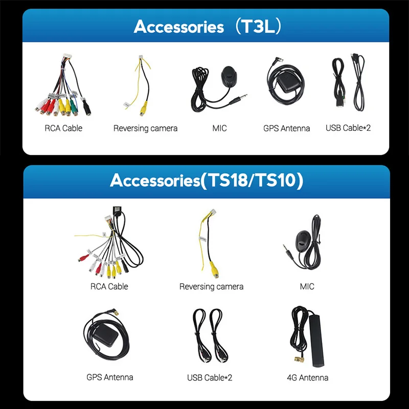 ★Аксессуары TS10/TS18: RCA с слотом для sim-карты + 4G Atenna + GPS Atenna + USB * 2 + Обратный кабель