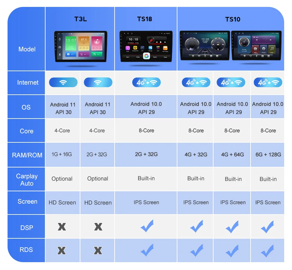 > Встроенный беспроводной Carplay + Android Auto (TS18/TS10)