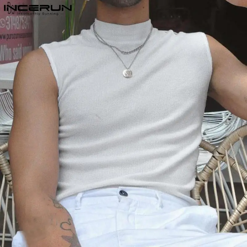 Отзывы о 2023 модные мужские майки с высоким воротником однотонная уличная одежда без