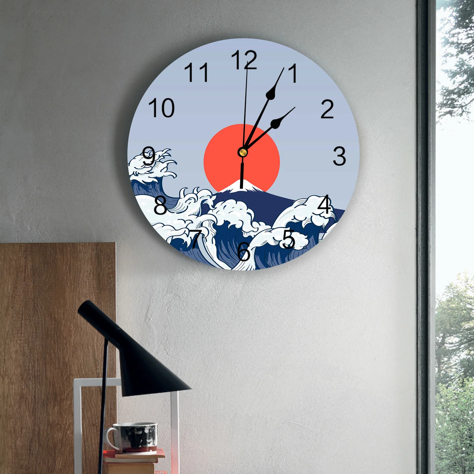 Отзывы о Красные солнечные волны Ретро Zephyr цифровые настенные часы украшение для дома и