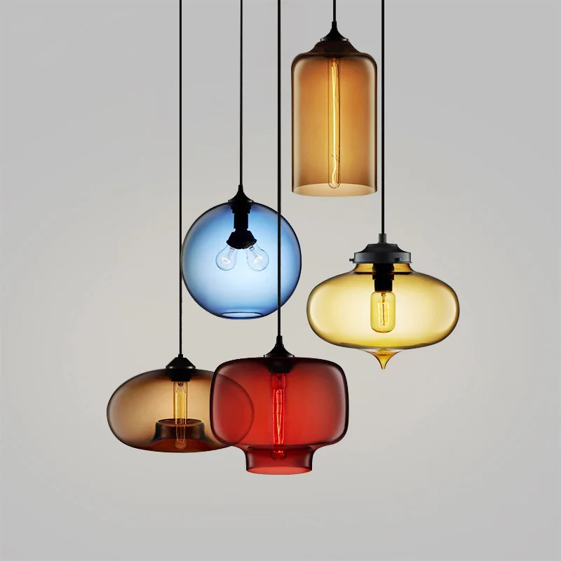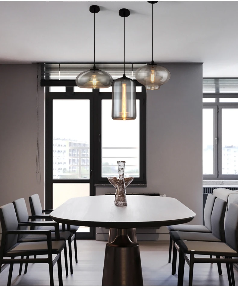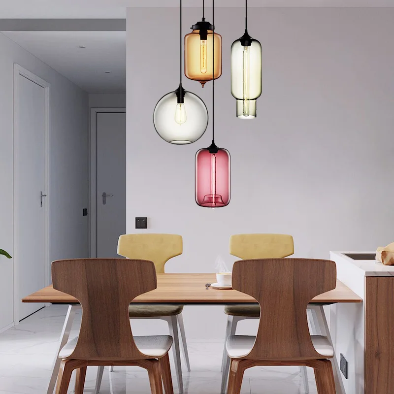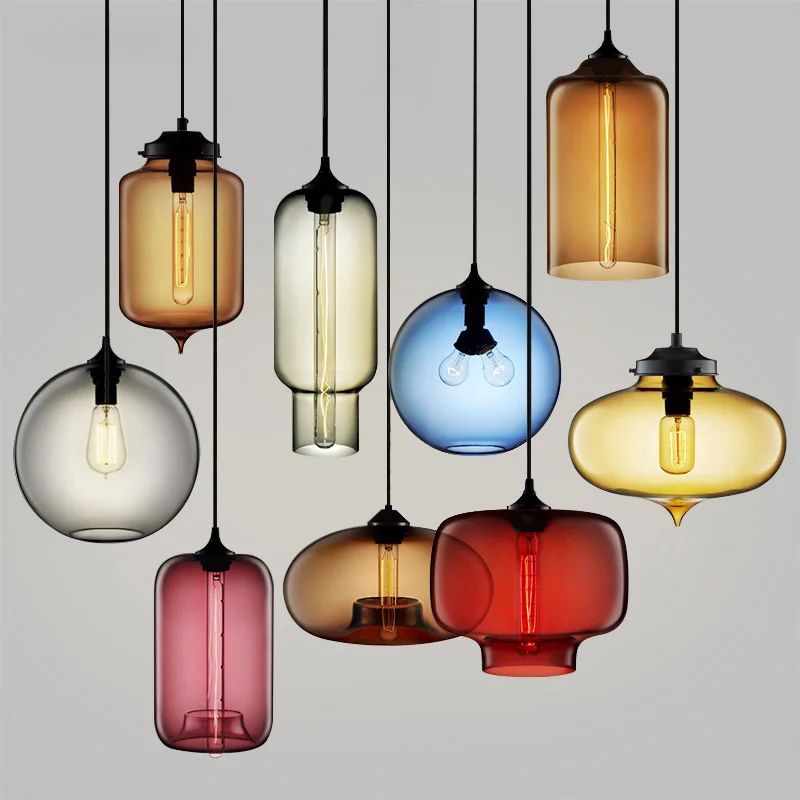 Отзывы о 2022 современные стеклянные люстры E27 лофт лампа с абажуром подвесные светильники