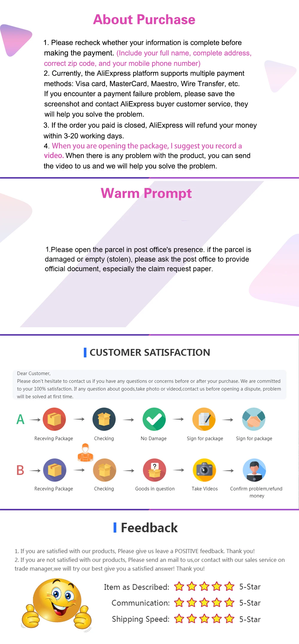 * Когда есть какие-либо проблемы с продуктом, вы можете отправить нам видео, и мы поможем вам решить проблему