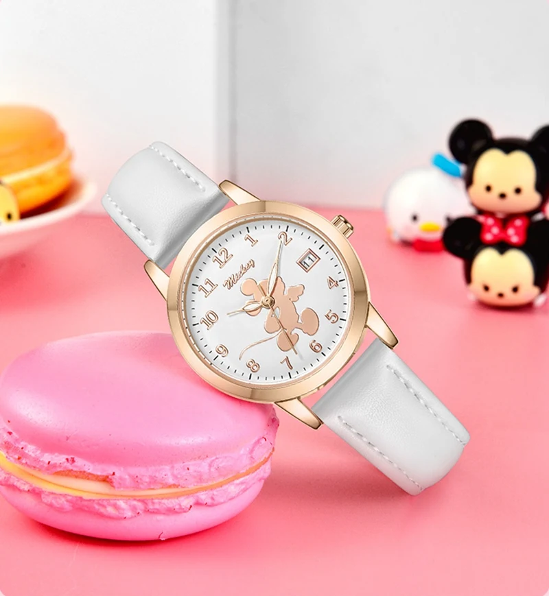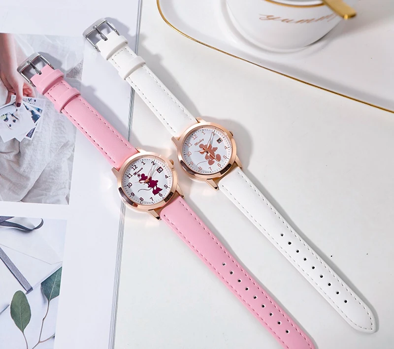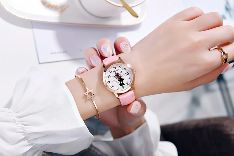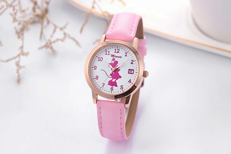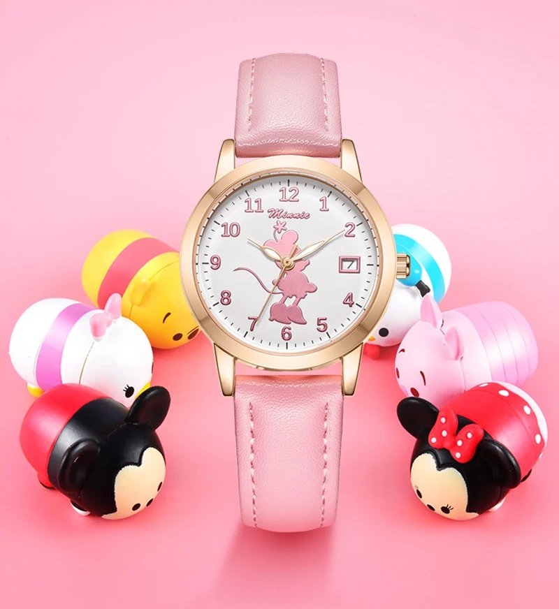 Дисней Минни Маус и Микки Маус детские наручные часы для женщин модные японские кварцевые часы с календарем милые девушки кожаный ремешок 30 метров водонепроницаемые часы для женщин лучший подарок