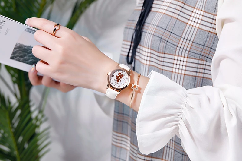 Отзывы о Часы наручные женские кварцевые аналоговые с кожаным ремешком и Минни-Маус -